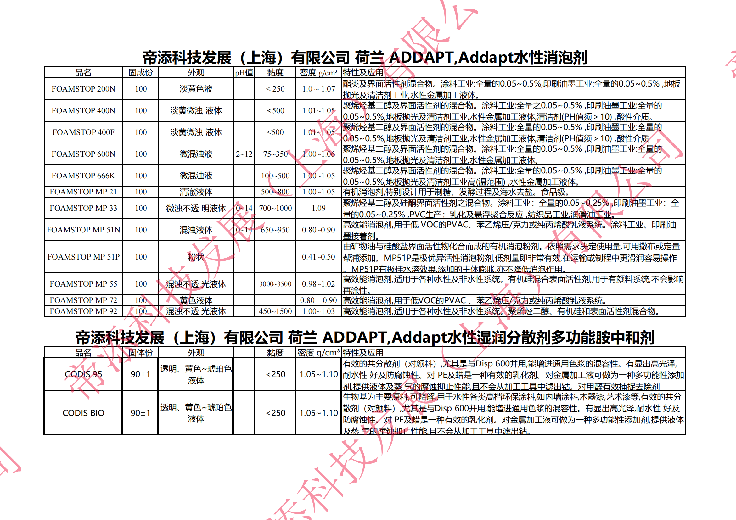 | 帝添科技發(fā)展(上海)有限公司 荷蘭 ADDAPT,Addapt水性消泡劑 | ||||||