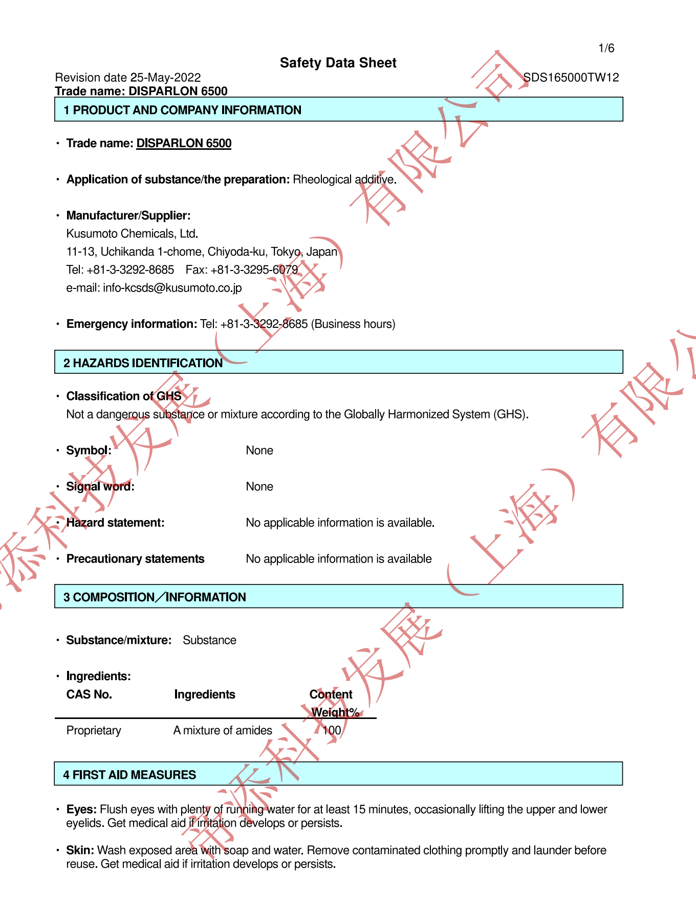 ENDISPARLON SDS 6500 聚酰胺蠟粉觸變劑 MSDS