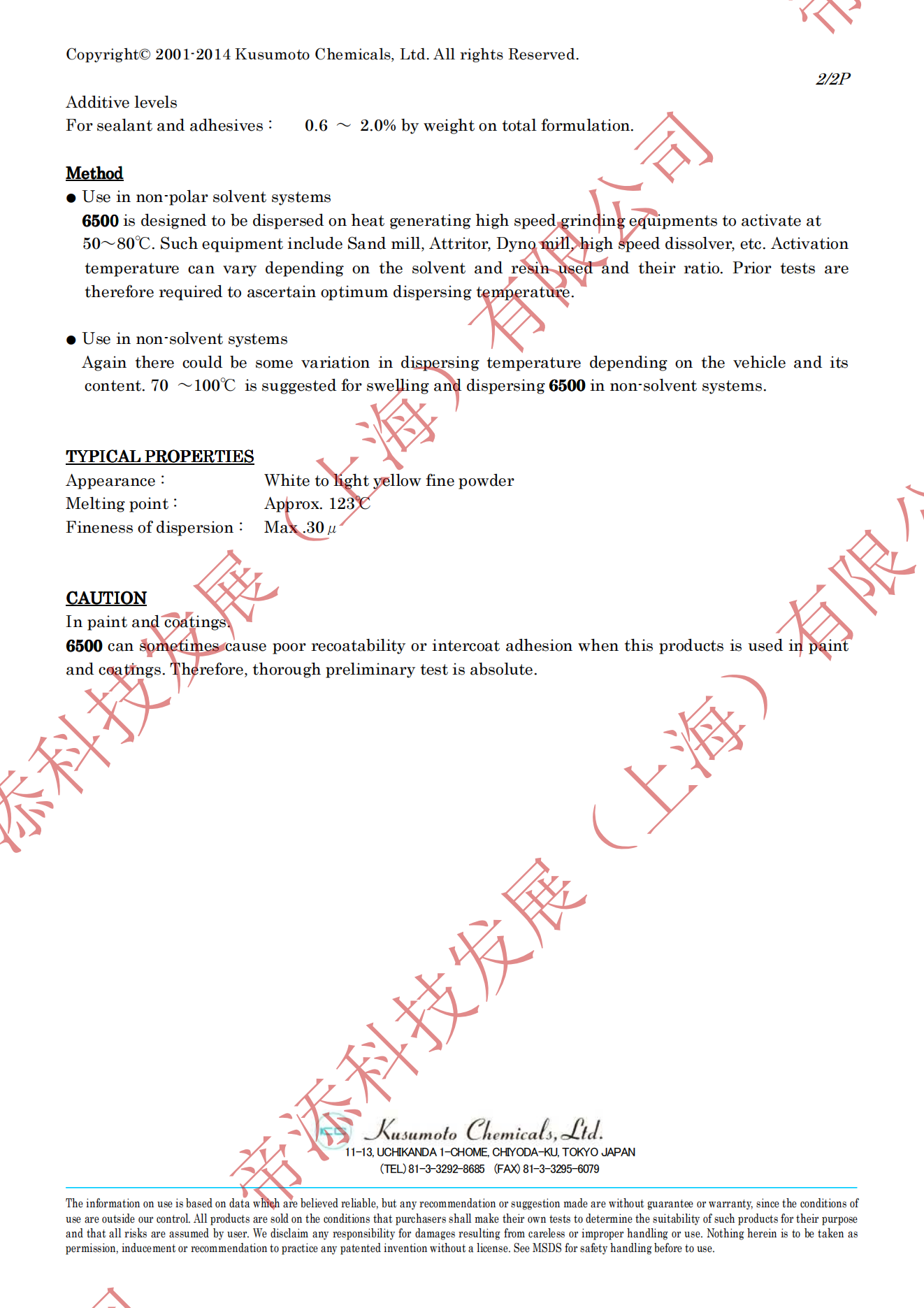 6500活化溫度為50~80℃,在有熱生成之高速研磨設(shè)備中和顔料一起分散,這些