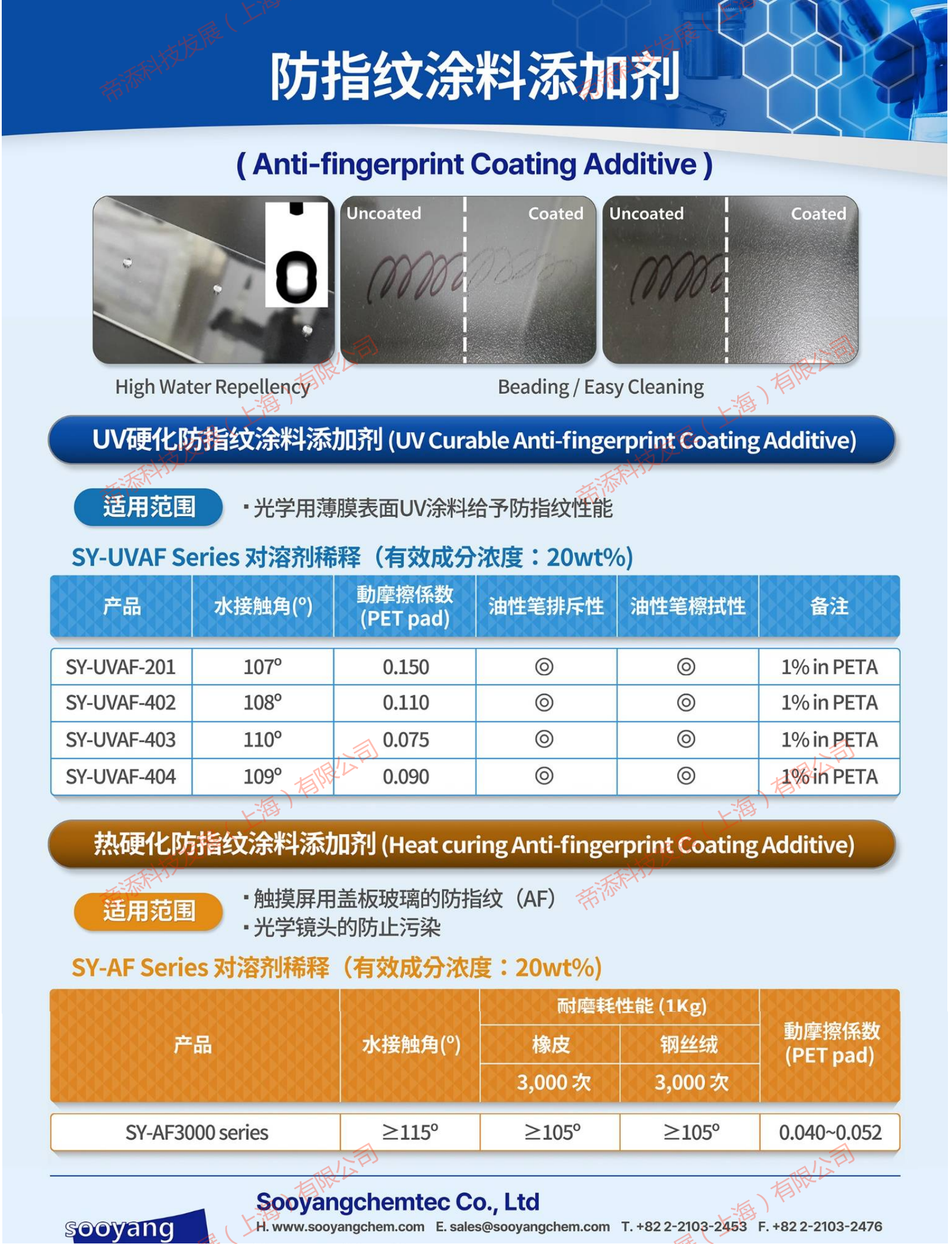 帝添科技防指紋涂料添加劑光學(xué)薄膜防觸摸素養(yǎng)科技sooyang UVAF 系列