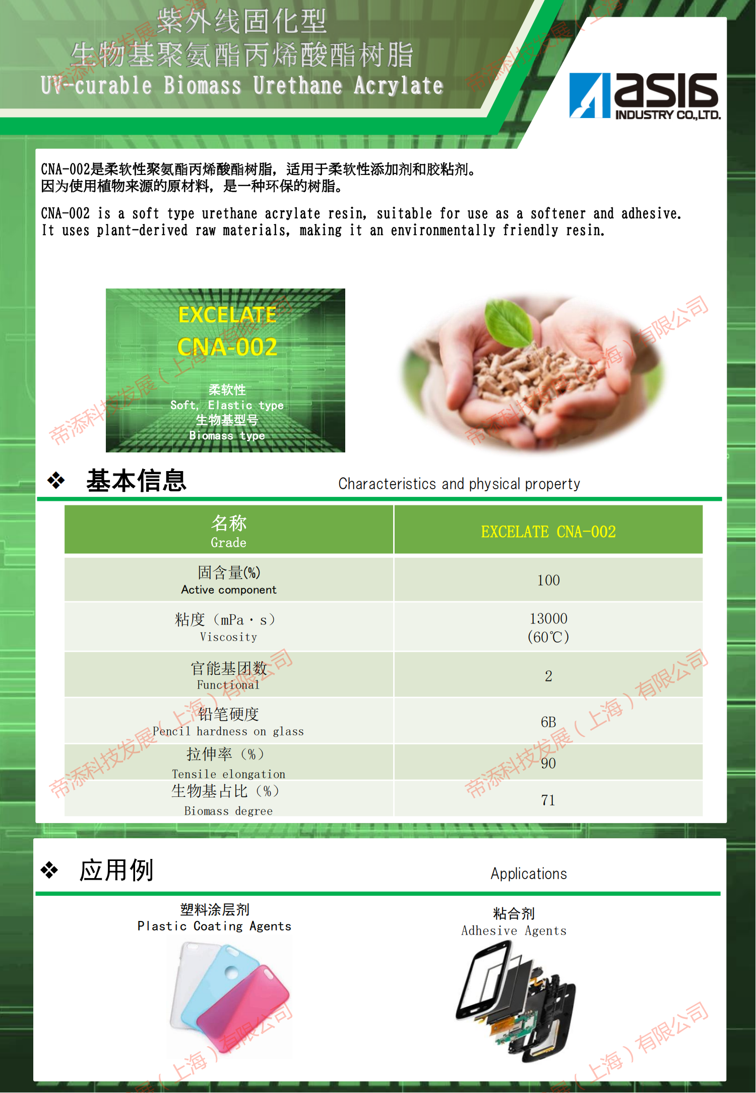 帝添科技日本亞細(xì)亞紫外線固化型生物基聚氨酯丙烯酸酯樹脂CNA-002
