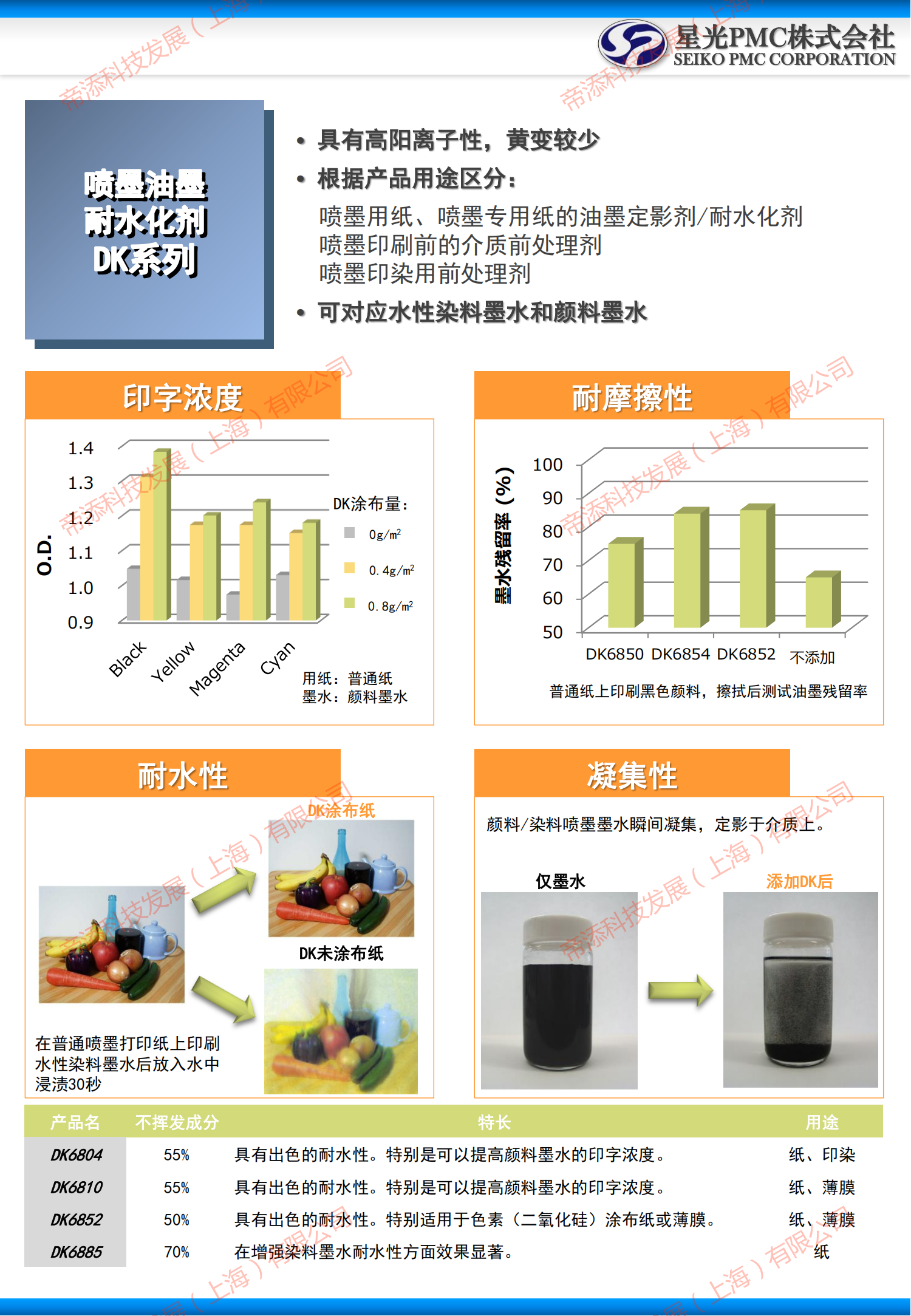 帝添科技 日本星光PMC噴墨油墨耐水化劑DK系列DK6804,DK6810,DK6852,DK6885
